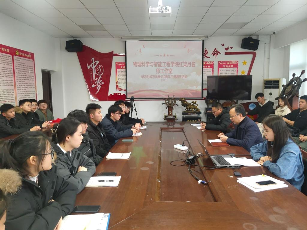 为缅怀伟大领袖毛主席,传承优秀红色基因,引导广大青年从中汲取奋进力量,12月28日,物理科学与智能工程学院红柒月名师工作室开展纪念毛泽东诞辰130周年主题教育活动。学院党委书记卫建勋出席会议,学生党员代表参加,会议由辅导员赵亚主持。
