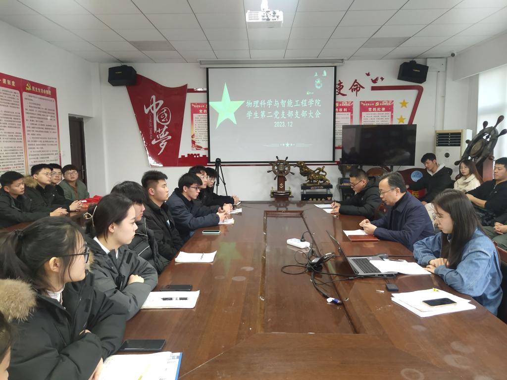 12月26日,物理科学与智能工程学院学生第二党支部在9号楼2楼会议室召开党支部大会,审议赵成林、许传磊等九名同志的党员转正问题,会议采用线上线下相结合的方式开展,学生支部全体党员参加会议,学院党委书记卫建勋出席会议,会议由支部书记赵亚主持。