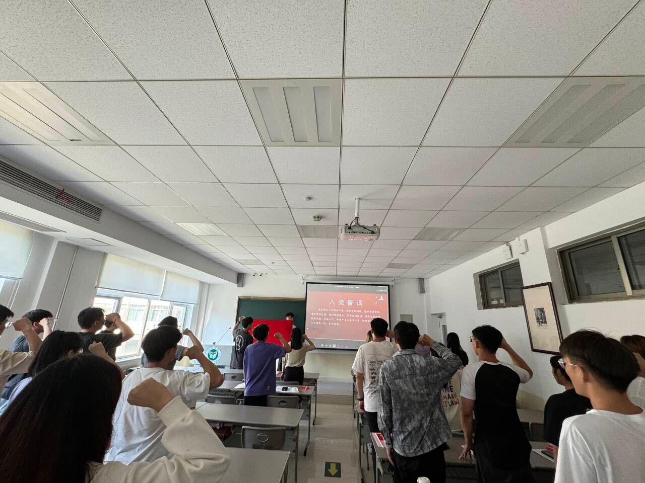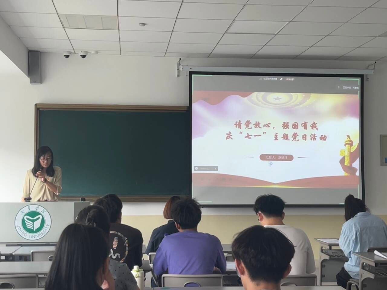 活动伊始,赵杨洋带领大家集中学习新修订的《中国共产党纪律处分条例》部分内容,随后赵杨洋、赵亚分别围绕党章中与时俱进的纪律建设、党的纪律处分和影响期,为党员同志上了生动的纪律党课。接着,全体党员共同观看灯塔大课堂五十三期“请党放心 强国有我”。在“唱支红歌给党听”环节中,党员齐唱《没有共产党就没有新中国》,在慷慨激昂的旋律中,热情讴歌中国共产党领导中国革命和建设取得的伟大成就。最后,郝晓琳带领与会党员重温入党誓词,同学面对党旗许下铮铮誓言,激荡着新时代青年走向未来的智慧和力量,激励着广大党员爱党爱国、建功新时代的使命感和责任感。