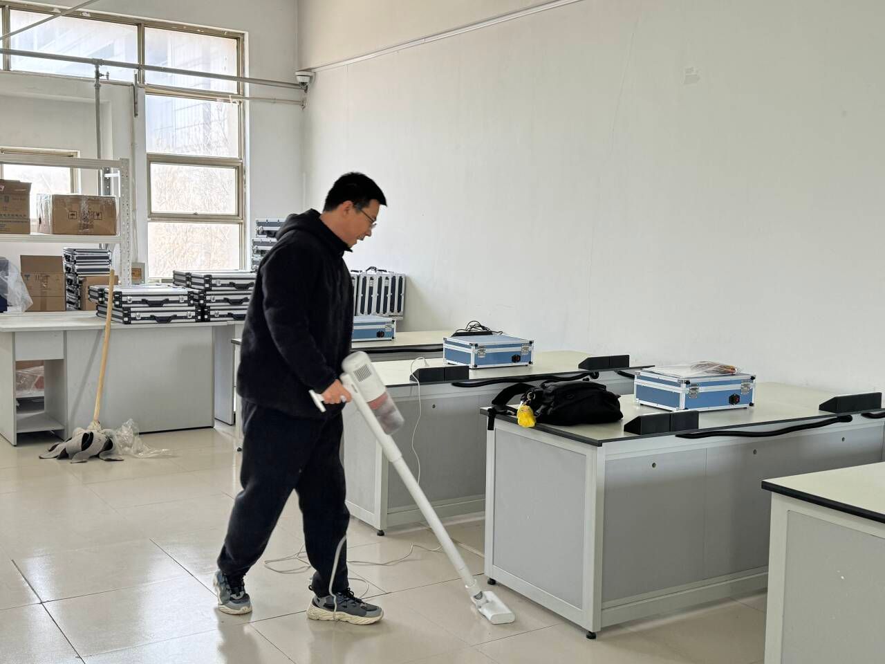 随后,教工党员充分发挥先锋模范作用,带领学生党员、入党积极分子迅速投入到实验室清扫工作中。大家分工明确,配合默契,认真擦拭实验设备、清扫地面、整理物品。有的党员积极分子主动承担起清理卫生死角的任务,不怕脏、不怕累;教工党员则凭借丰富经验,在清理过程中指导大家如何更好地维护实验设备,确保在清洁的同时不影响设备正常运行。