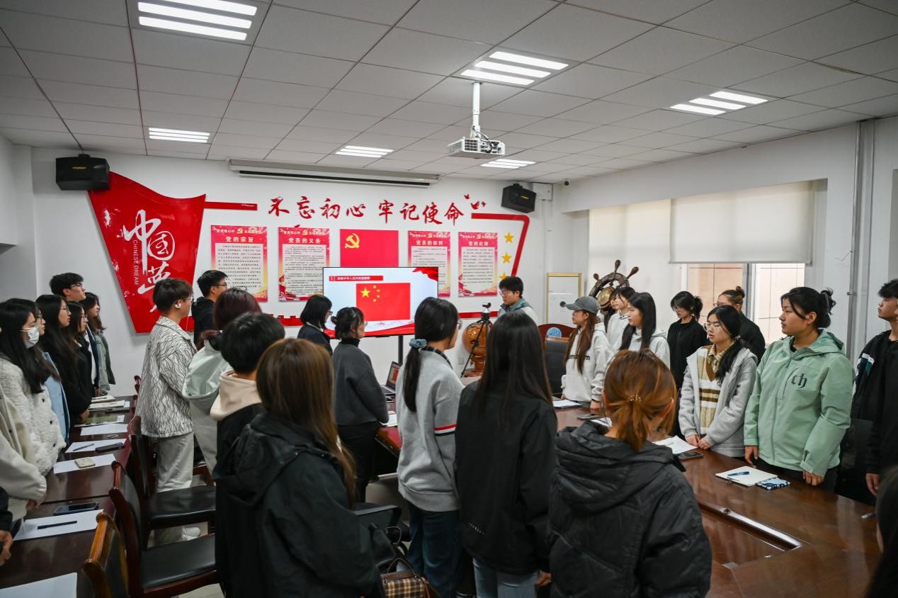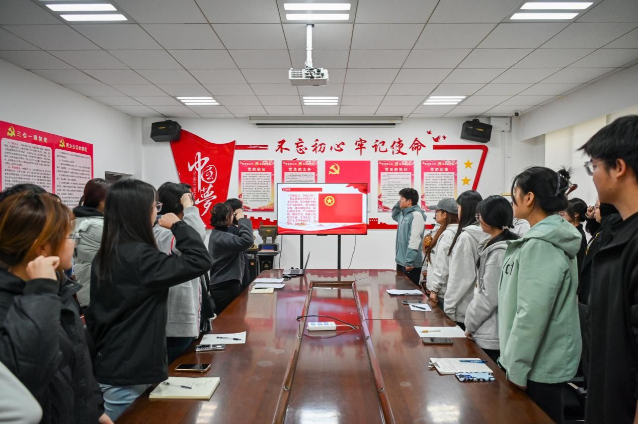 在团旗宣誓环节,全体学员在李丹丹同学的带领下,面向鲜艳的团旗,庄严宣誓。誓言掷地有声,表达了学员们对马克思主义的坚定信仰,以及立志成为优秀青年马克思主义者的决心。仪式在激昂的共青团团歌声中落下帷幕,也标志着学院 “青马工程” 正式启航。