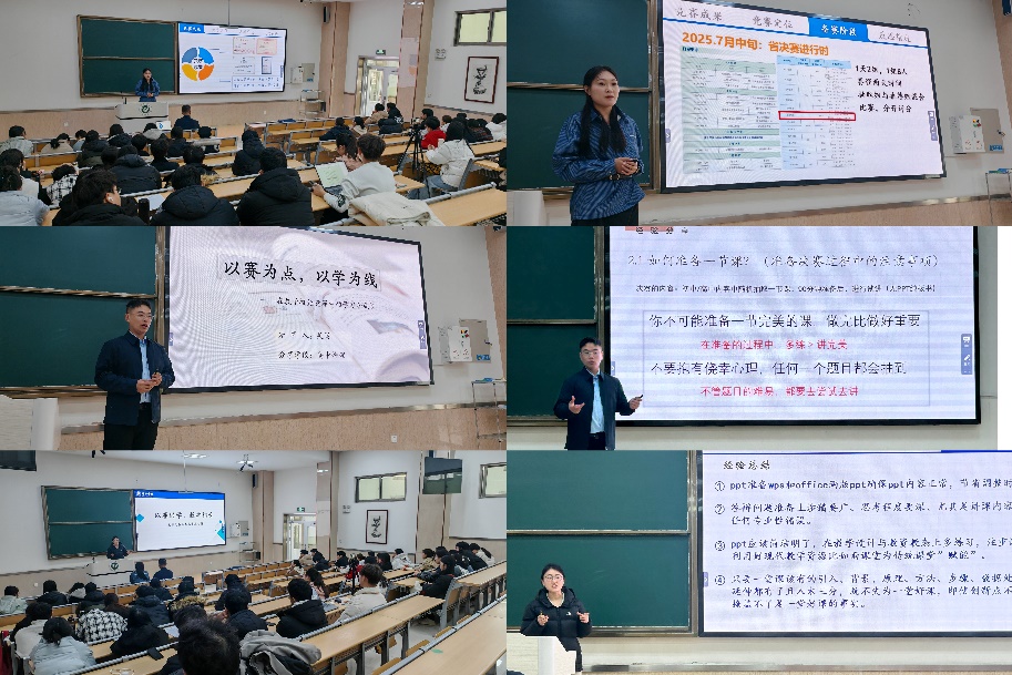 分享中,针对山东省师范类高校学生从业技能大赛和全国大学生物理实验竞赛等比赛,三位同学分别结合备赛与参赛经历,从备赛及比赛详细流程、竞赛信息获取、教学设计、课件制作、教具制作、比赛视频录制、心态调整、赛后反思和能力积累等方面,分享了实用的实战经验和成长感悟。互动环节,他们耐心解答学弟学妹们关于备赛规划、课堂应急等问题,现场氛围热烈。听取报告的同学纷纷表示三位学长学姐的分享正是他们在今后准备比赛及大学学习中所急需的,能够从中学习到很多非常宝贵的教学比赛实战经验。