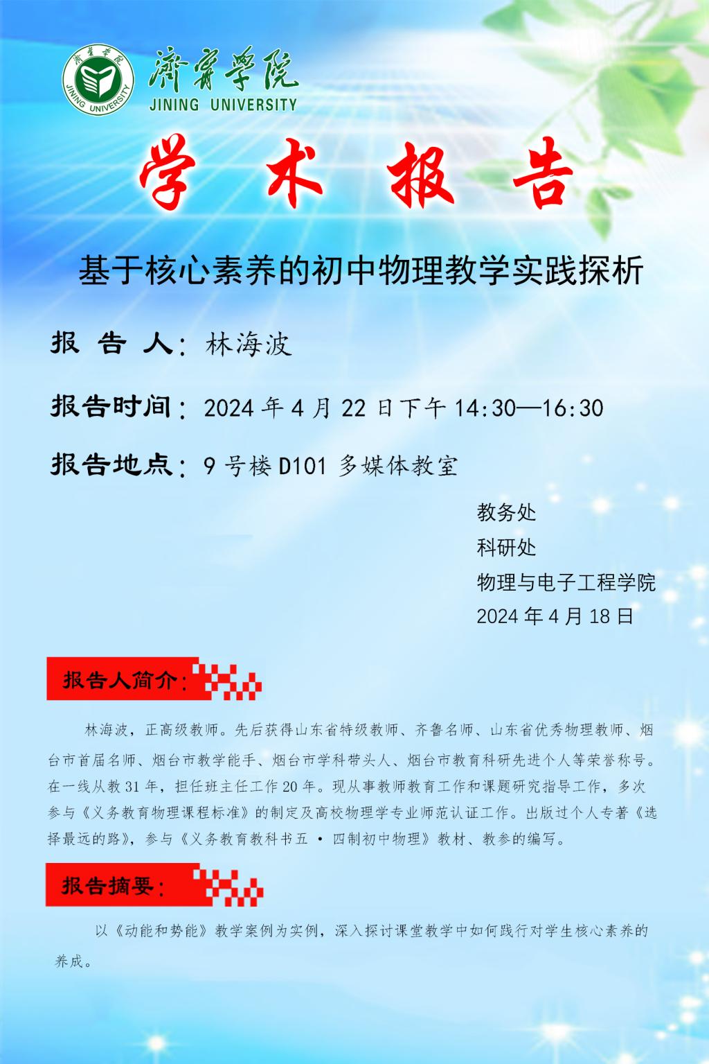 学术报告:齐鲁名师林海波——基于核心素养的初中物理教学实践探析