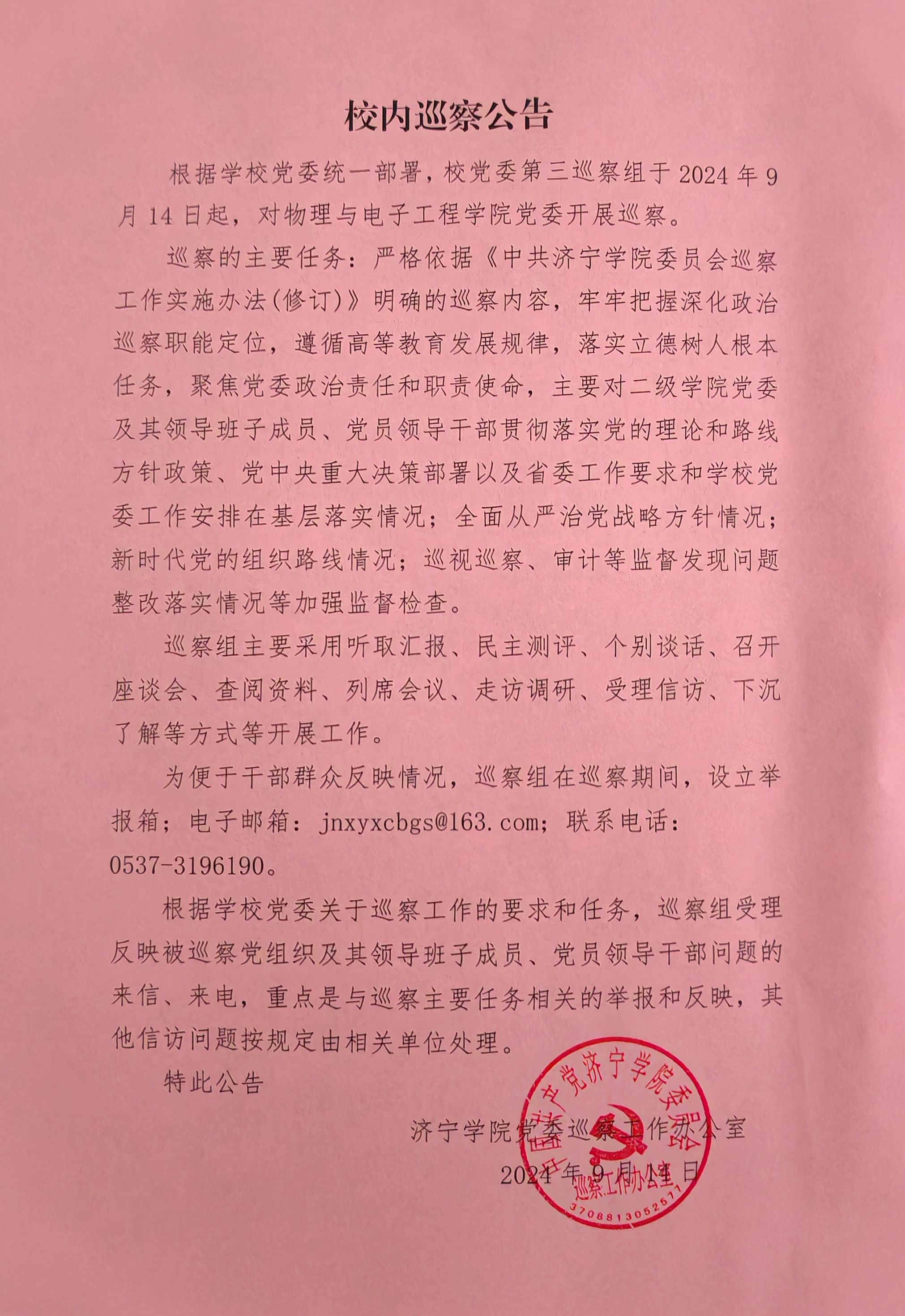 校内巡察公告
