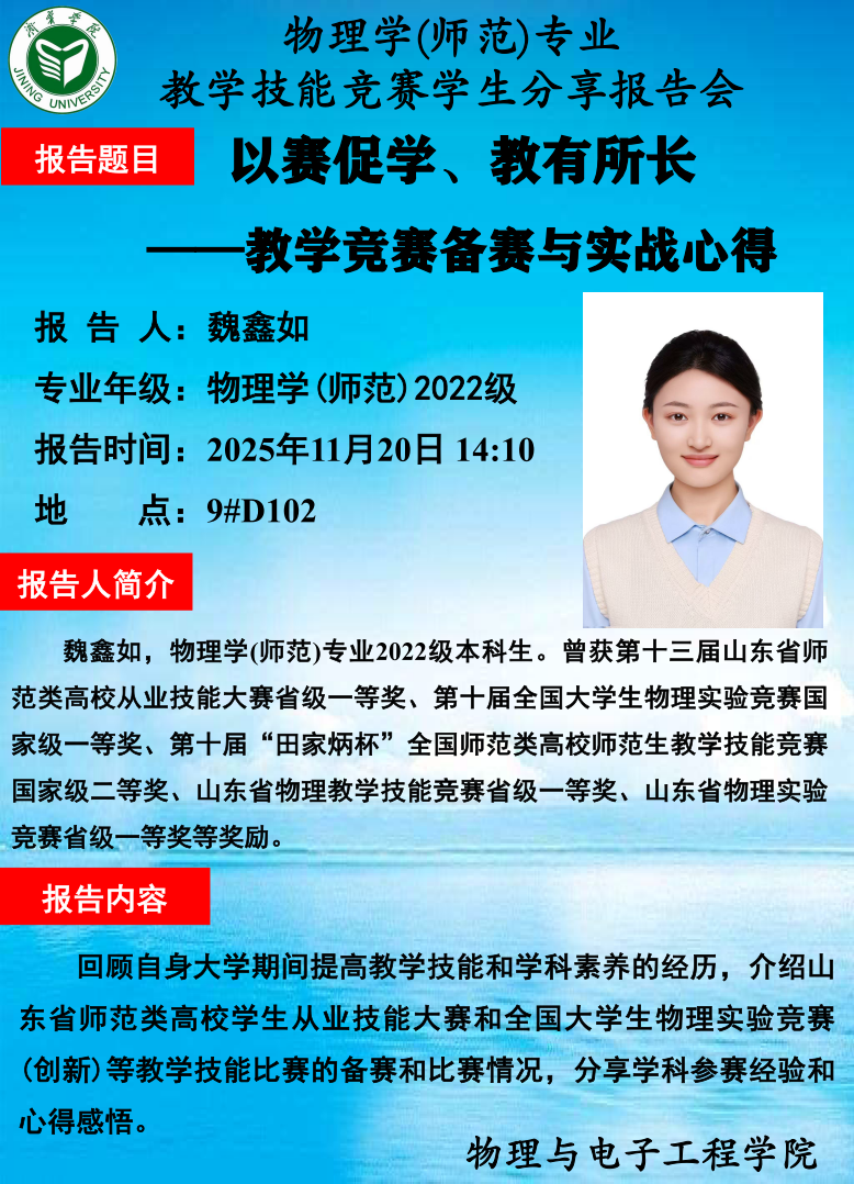 物理学(师范类)专业教学技能竞赛学生分享报告会