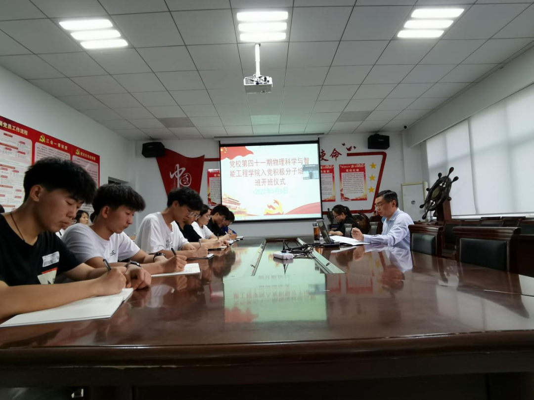 5月5日晚,物理科学与智能工程学院在学院会议室通过线上线下相结合的方式举行党校第41期入党积极分子培训班开班仪式。学院党委书记孙文出席开班仪式并进行首场专题辅导报告,学生党支部书记赵燕及全体入党积极分子参加开班仪式。