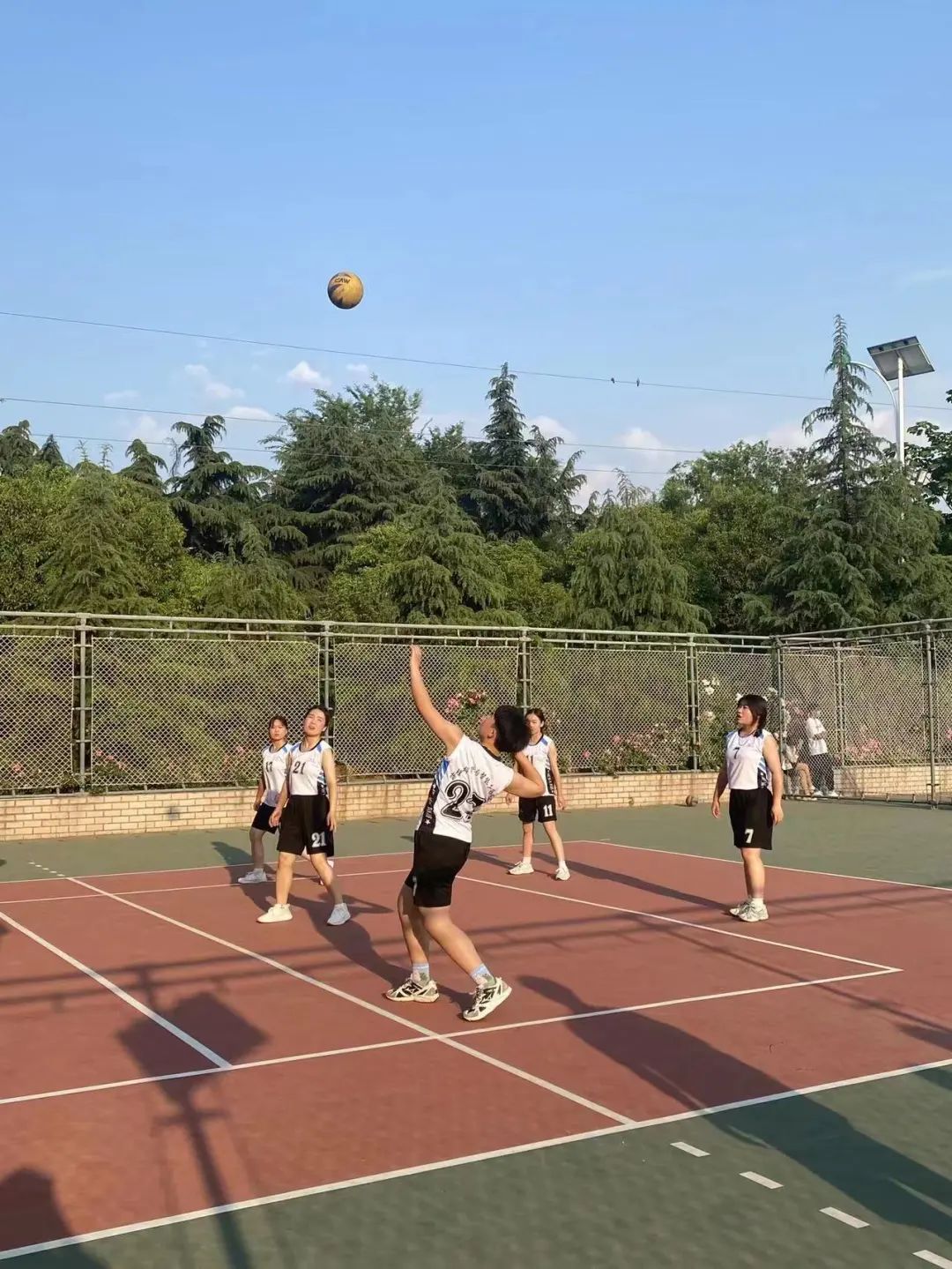 本着“友谊第一,比赛第二”的原则,我院与其他学院进行竞争。赛场上,我院代表队队员一起、一蹲、一颠、一扣、一传,动作行云流水,球撞击地面铿锵有力,队友之间团结协作,互相加油打气,展现了我院学子的积极、默契、友爱。