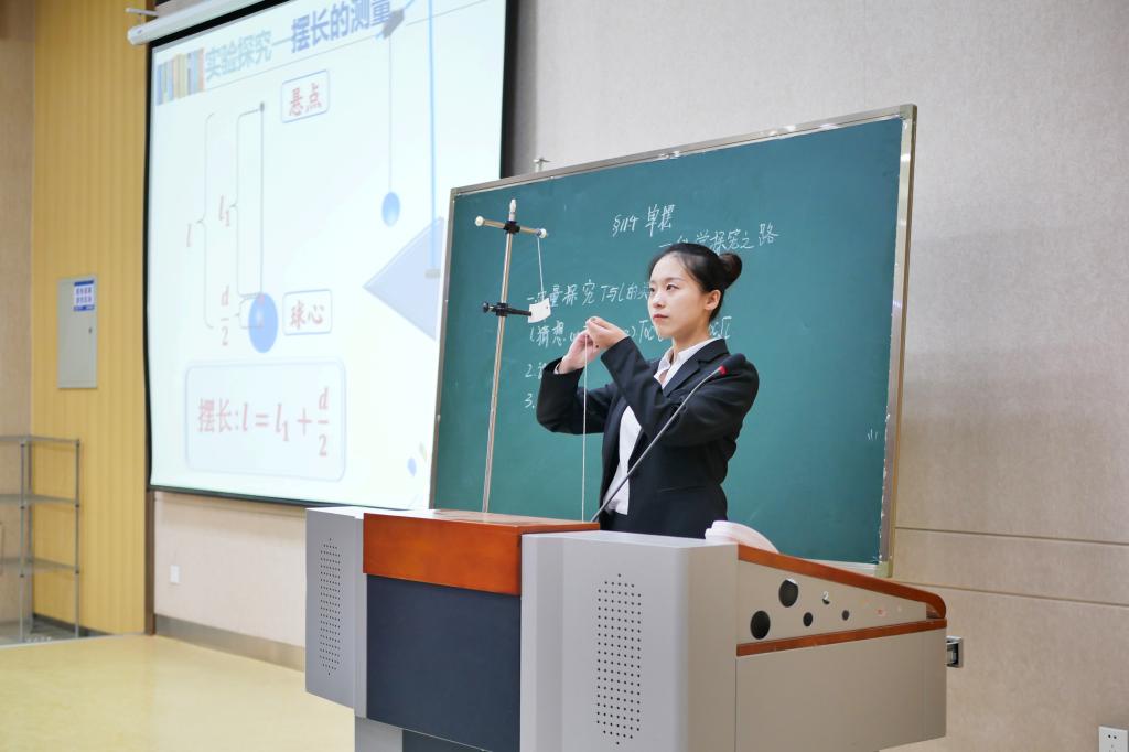 会议伊始全体同学观看了关于第七届省师范生教学技能大赛的宣传视频,使大家进一步明晰了比赛对于师范学生的重要意义。随后杨尧文同学开始介绍本次经验交流会的主要内容,交流会主要包括模拟授课展示、比赛经验交流、教学技能提升和支教经验交流。杨尧文同学给大家带来一场精彩的示范课展示,她的语言极富感染力,动作准确有力,板书工整秀美,节奏有条不紊,体现了极高的授课素质。之后,杨尧文同学分享了自己对于大赛获奖的经验及参赛注意事项,并从仪表心态,规范性问题等方面为准备参赛的同学提供了宝贵的经验。杨尧文同学还将自己的支教过程及心得体会与同学们分享,让同学们对于支教的兴趣有了极大的提升。最后,由杨连武老师为参会的同学介绍了各种大赛的参赛要求、注意事项、作用意义及以及对同学们未来人生规划的意见与建议,杨老师鼓励各级物理学(师范方向)的同学积极备赛,希望大家在以后的比赛中能再创佳绩!