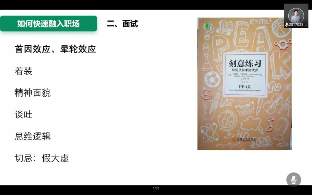 2021年10月30日,物理学院邀请到 2017级优秀校友罗云磊来宣讲大学生就业指导课,令同学们受益匪浅。罗老师主要为同学们讲述了如何快速融入职场,让同学们更好地缓解面临进入职场的紧张感。以下为对罗老师所讲内容进行的总结概括: