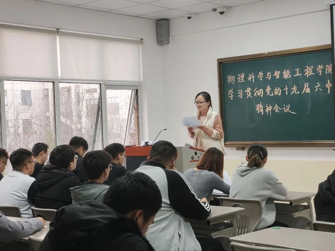 为深入贯彻党的十九届六中全会精神,2021年11月26日,物理科学与智能工程学院曲阜校区学生党支部在九号楼C204召开了贯彻党的十九届六中全会精神主题党课,与此同时高新区大学园党小组在b2-401召开了此次党课,此次党课分别由团委书记赵燕和辅导员赵亚主持。