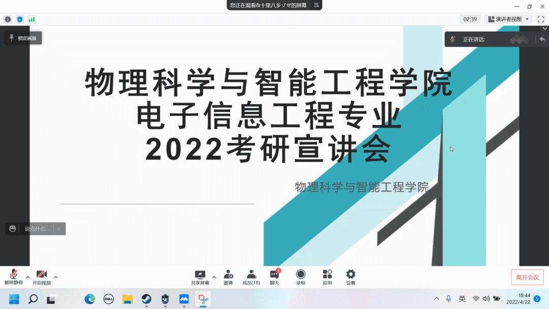 为进一步发挥榜样的作用,引导学生树立正确的考研目标,进一步推进物理科学与智能工程学院考研工作高质量推进。4月22日晚,物理科学与智能工程学院成功举办线上考研经验交流会,邀请杜宗栋、焦思琪等9名研究生代表作了经验交流分享。