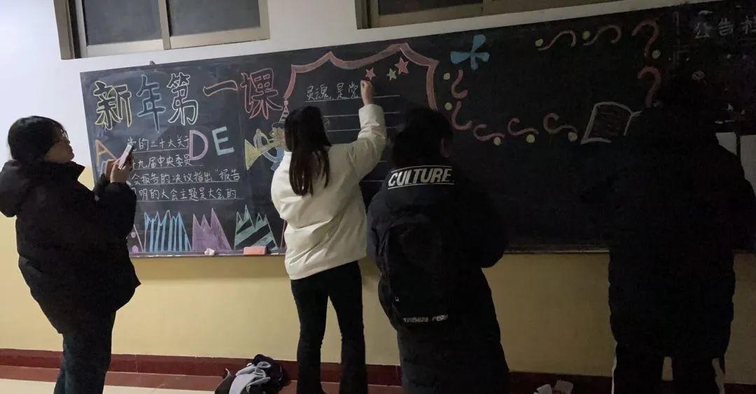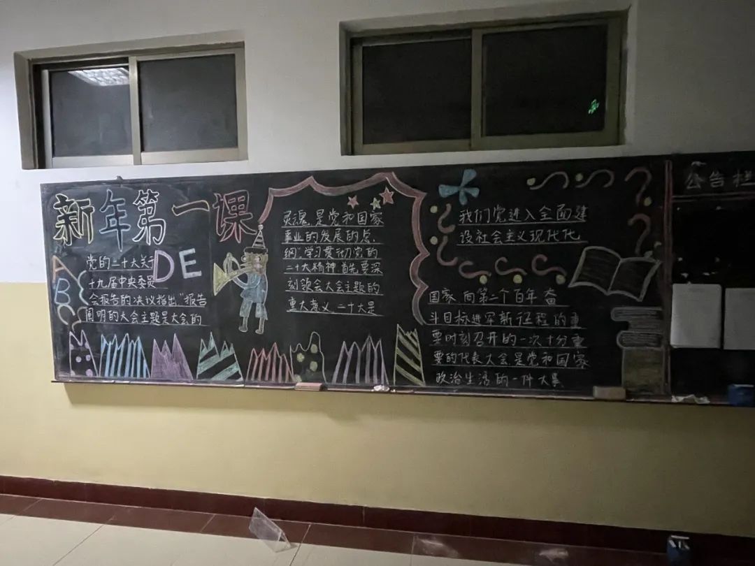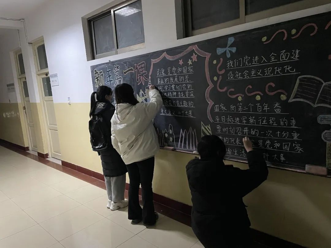 为深刻学习党的二十大精神,2月12日物理科学与智能工程学院青年志愿者联合协会开展“新年第一课”美化黑板报活动。