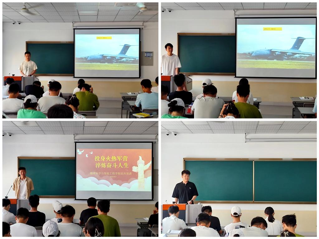 物理科学与智能工程学院组建了由不同兵种退役的大学生代表构成的宣讲团,目前有四位成员:21电子专科专业阎文起、魏皓东,22电子专升本专业龙康、辛鹏。宣讲会上,四位宣讲团成员结合自身实际,详细的为大家讲解了参军入伍的基本条件及政策、待遇,让同学们近距离接触国防知识,感受国防魅力。同时他们结合自身的亲身经历,与同学们分享了在火热军营中锻炼成长、报效祖国的军旅记忆,并用图片视频的方式展示了真实的部队生活。在宣讲最后,通过提问、答疑的互动方式,宣讲团号召学院青年学子抓住机遇,积极响应国家号召,投身军营报效祖国,让青春在军营的历练中、在为我国建设现代化人民强军中奉献青春热血。