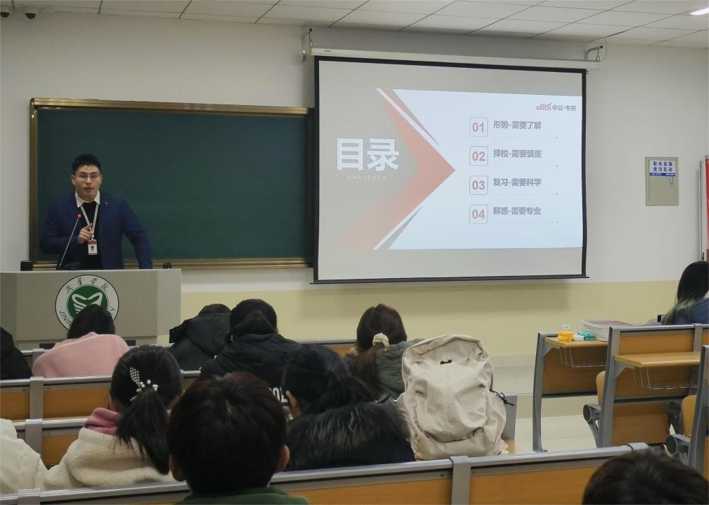 为提高物理科学与智能工程学院考研学生备考的积极性和针对性,同时积极促进本院学风建设月系列活动开展,11月17日,中公教育王日恒老师前来进行公益讲座。