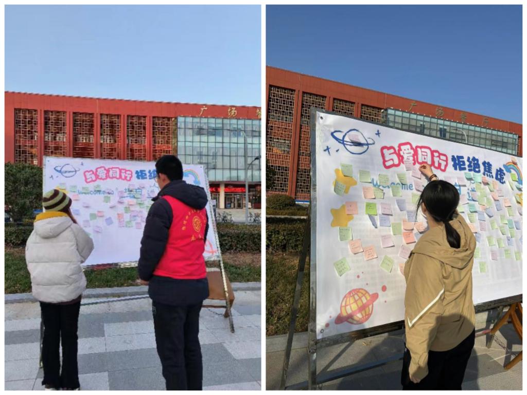 为了帮助同学们停止精神内耗,更好的把握生活节奏,12月7日,物理科学与智能工程学院举办“与爱同行,拒绝焦虑”志愿服务活动。活动中,志愿者们积极呼吁同学们写下自己的焦虑与烦恼,并及时给予朋辈的关怀与支持。同学们踊跃参加,志愿者们细心引导,在寒冷的冬日碰撞出了爱与温暖。