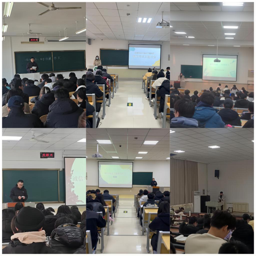 随着考试周的临近,为严肃考风考纪、维护公平公正的考试环境,营造良好的学风院风,12月25日-28日,物理科学与智能工程学院在全院范围开展“学以载道 诚信为本”诚信考试主题教育活动,由各辅导员带领各班级开展。