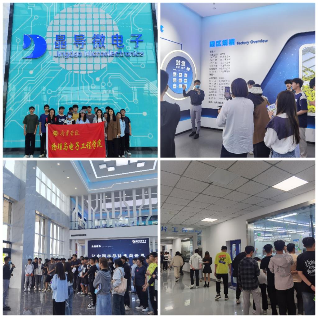 首先参观了山东晶导微电子股份有限公司,山东晶导微电子有限公司是集半导体分立器件的研发、生产、销售于一体的大型企业。公司主要生产全系列的表面贴装系列二极管,致力于为客户提供专业化、高效率、低成本的全系列二极管产品。师生共同在企业参观学习,了解企业生产组织、技术管理和安全生产等情况。参观过程中,现代化的生产设备、干净整洁的车间和智能高效的管理体系,提高了学生到半导体芯片企业就业的求职意向。