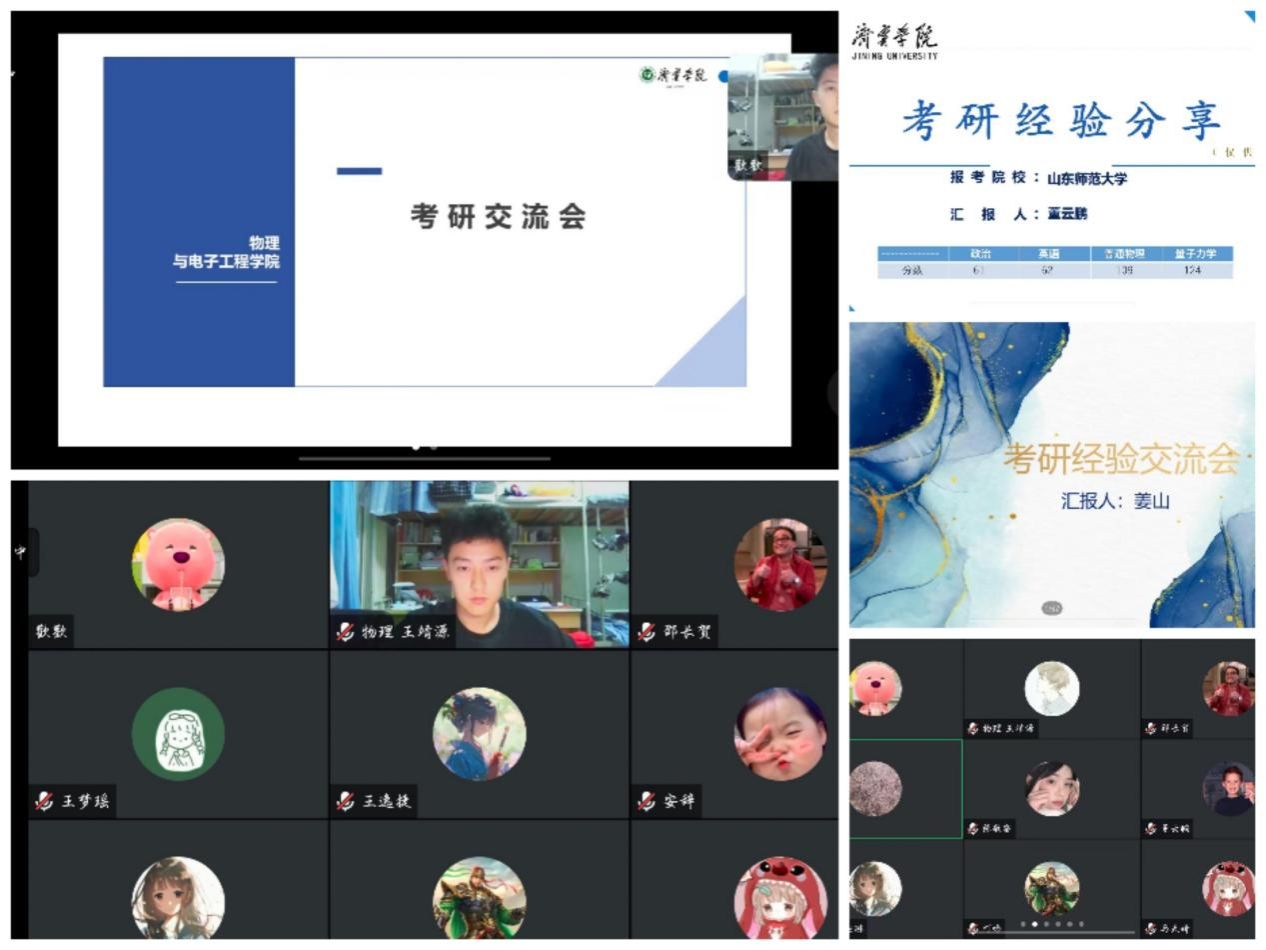 为了给2021级在外实习支教的物理学专业学生提供考研方面的有益指导与帮助,5月31日晚上,学院组织开展了别开生面的线上交流会。此次交流会邀请到3名2020级物理学考研上岸的同学,分别是:姜山(长春理工大学),陈敬睿(曲阜师范大学),董云鹏(山东师范大学)。