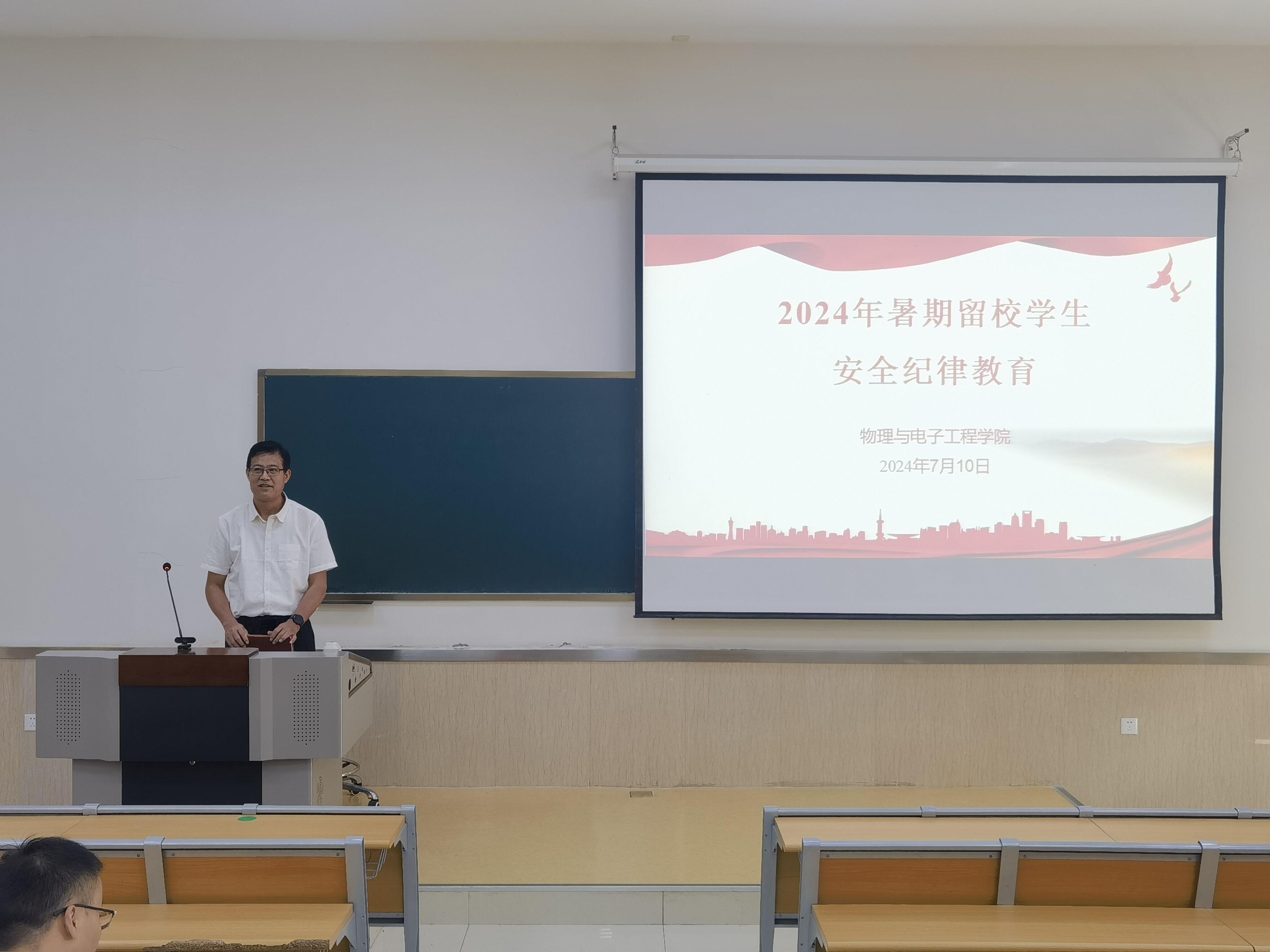 李洪波首先详细解读了暑期留校学生的管理规定,强调留校学生须严格遵守校园和住宿管理规定,严格遵守每晚考勤;同时,聚焦溺水、火灾、食品安全、自然灾害、网络诈骗等暑期易发多发的安全事件,将安全知识教育和法治教育、纪律教育相结合,全面系统的对同学们进行了安全专题教育。同时,李洪波还对暑假期间学校提供的心理咨询服务和学院提供的学习生活保障服务进行了温馨提示,勉励留校同学们珍惜时间,合理规划学习生活,力求暑期留宿期间学有所获、学有所得、学有所成。