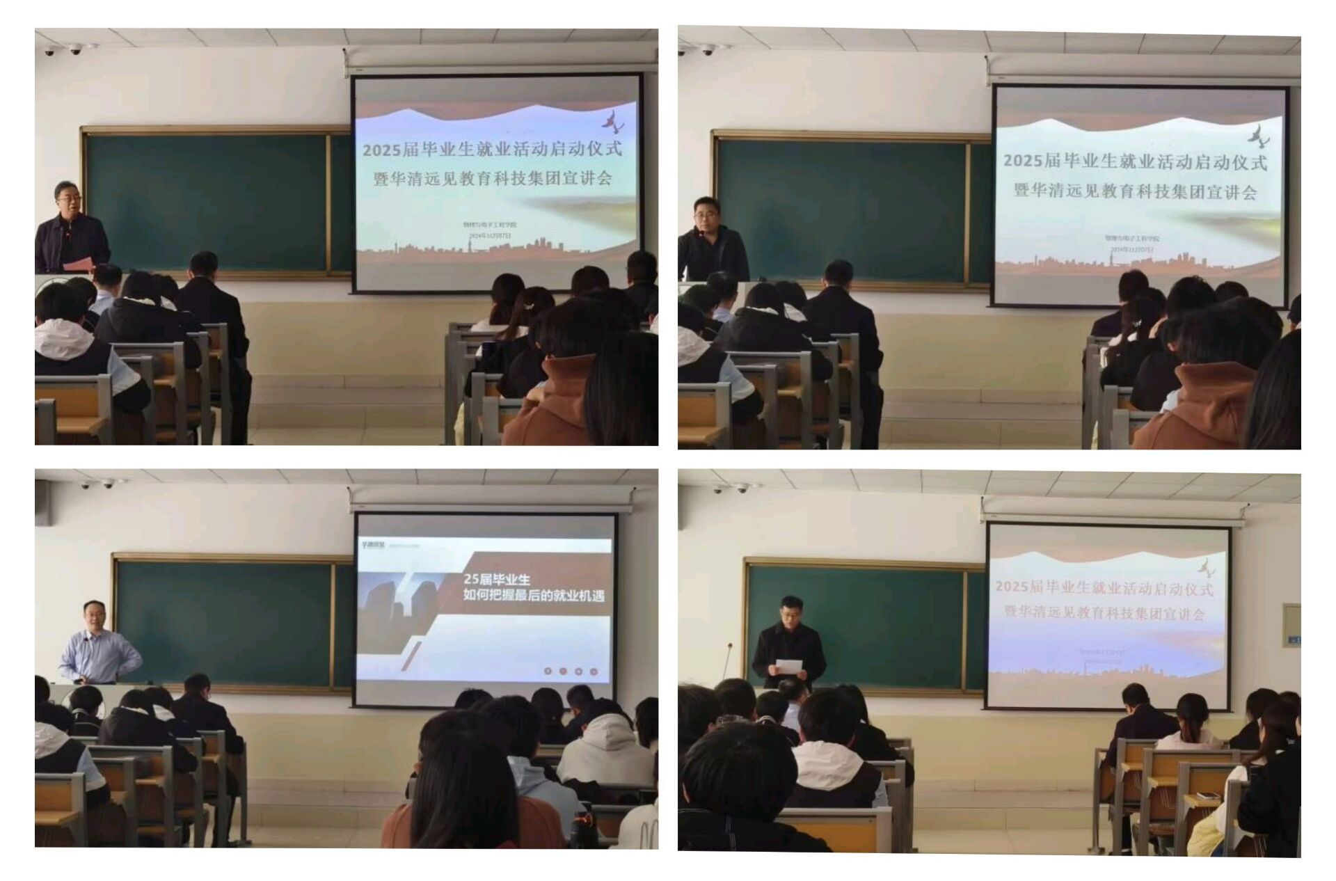 为给2025届毕业生提供更多的就业机会和职业发展指导,帮助他们更好地了解市场需求和行业动态,11月7日,伟德国际victor1946在9A204举行2025届毕业生就业服务月启动仪式暨华清远见教育科技集团宣讲会活动。学院党委书记卫建勋、副院长岳现房、华清远见教育科技集团副总裁李鹏、党委副书记李洪波、学术副院长田涛、辅导员明强和2025届部分毕业生参加了活动,活动由李洪波主持。