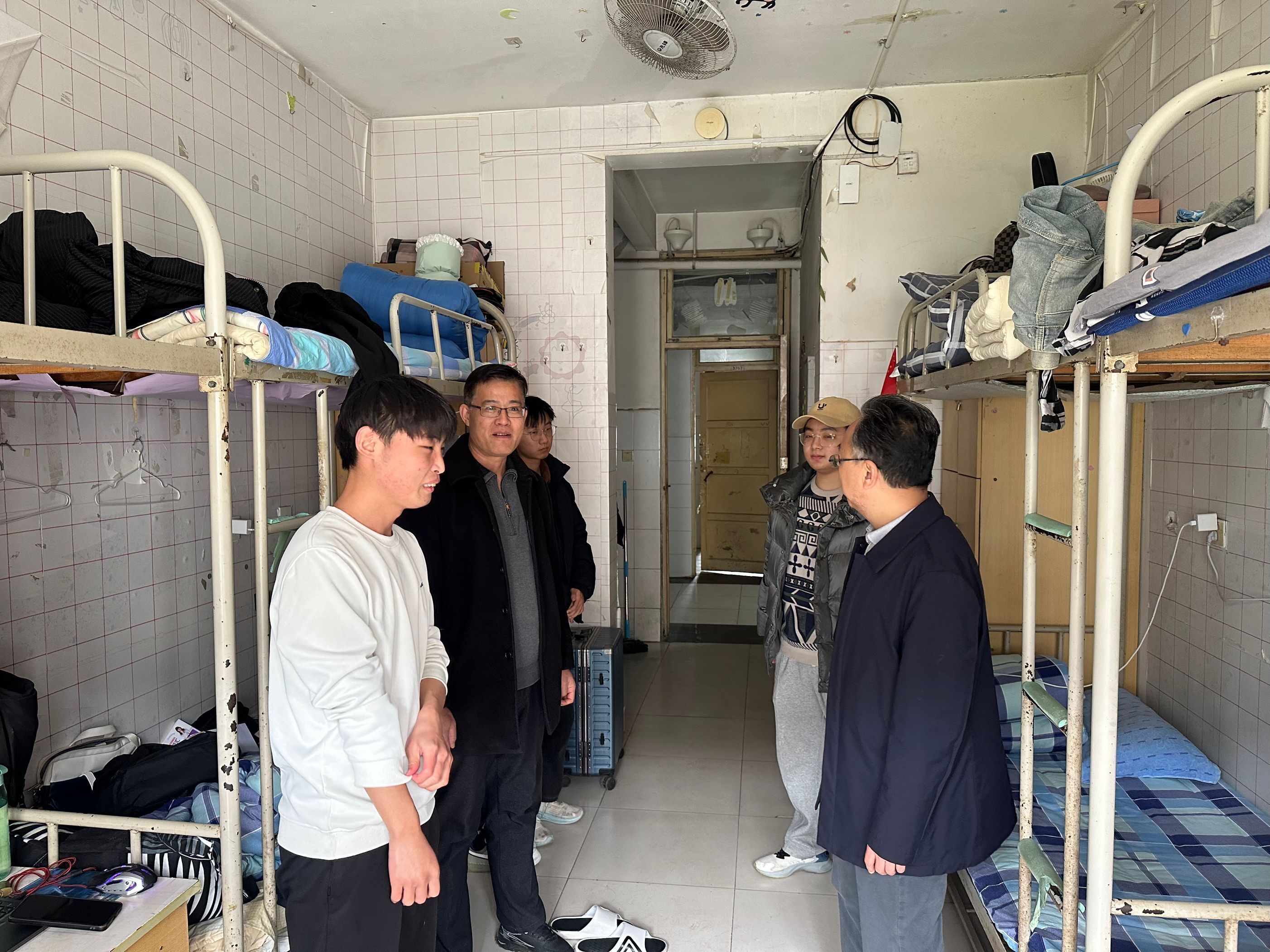在走访过程中,卫建勋与备考学生亲切交谈,仔细询问学生的复习进度、学习计划以及遇到的困难。他鼓励学生坚定信心,保持积极的学习态度,合理安排时间,注重劳逸结合,以最佳状态迎接专升本考试。李洪波则检查了宿舍的生活设施与环境,强调维护好宿舍的安全与卫生,让大家能够安心备考。