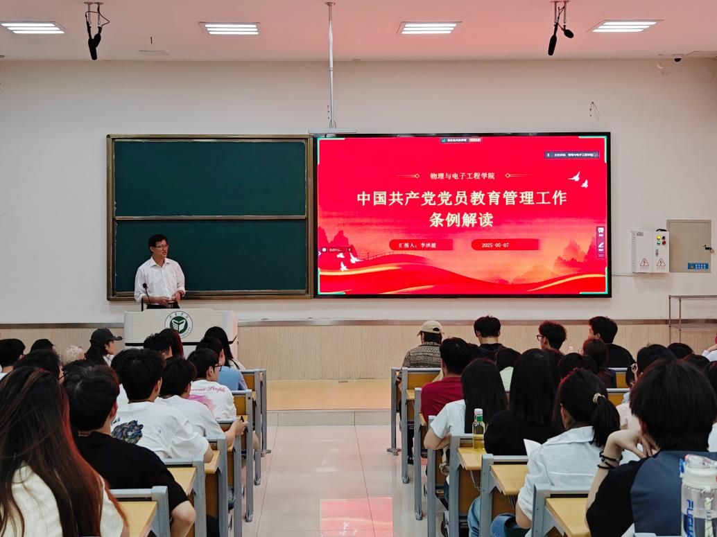 为深入学习贯彻习近平新时代中国特色社会主义思想,加强党员教育管理,提升入党积极分子的政治素养,5月7日,伟德国际victor1946党委副书记李洪波为党校第四十四期入党积极分子开展了《中国共产党党员教育管理工作条例》专题培训。此次培训在9#D102举行,全体入党积极分子参加。