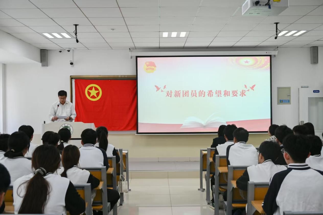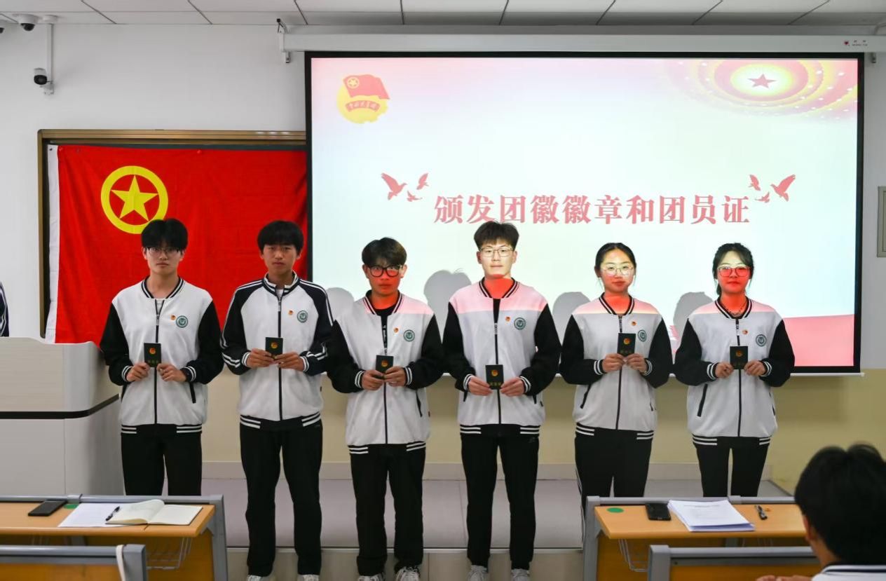 仪式在嘹亮的国歌声中拉开序幕。院团委书记赵杨洋宣读了新团员名单,并向全体新团员表示祝贺。随后,与会领导和老师为新团员佩戴团徽并颁发团员证。在新团员代表白继超同学的带领下,全体新团员面向团旗庄严宣誓,铿锵誓言展现了新时代青年的责任与担当。