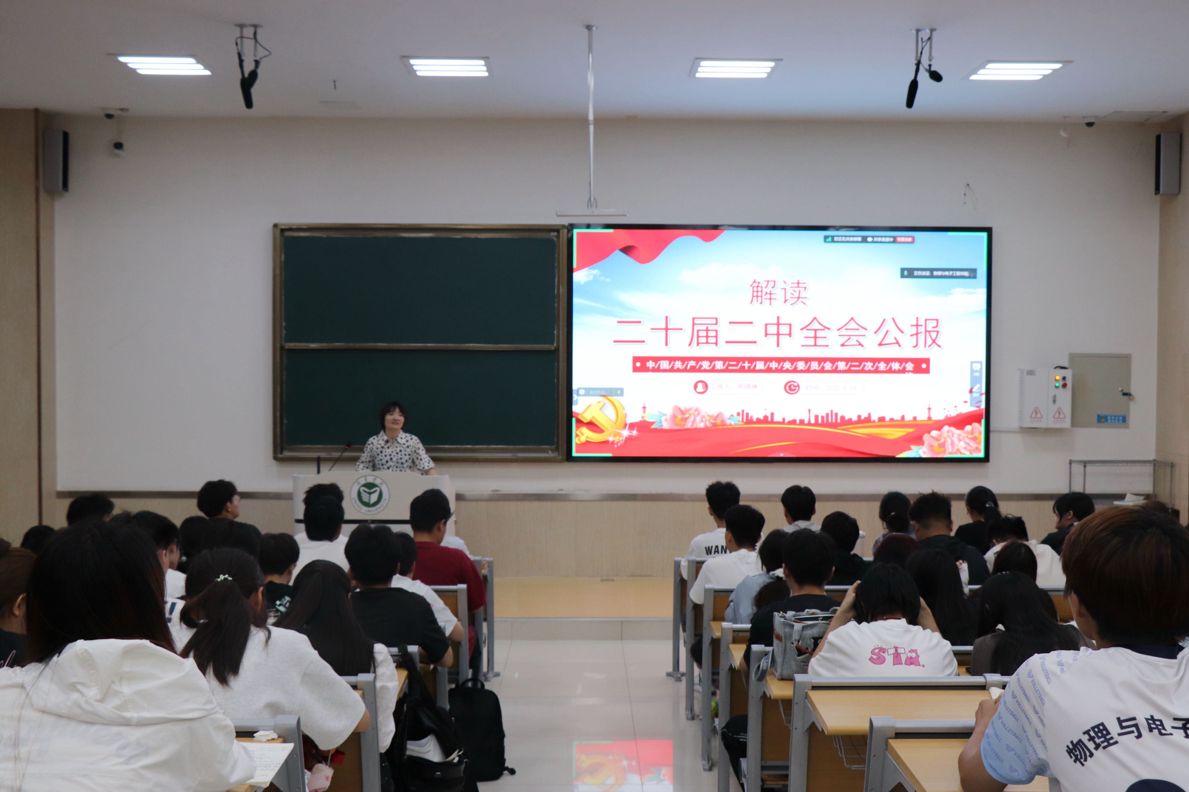 郝晓琳以党的二十届二中全会召开的时代背景为切入点,结合国际国内形势,深入剖析了全会召开的重大意义。她用详实的资料和生动案例,系统讲解了深化党和国家机构改革的目标、原则和重点任务,指出此次改革是推进国家治理体系和治理能力现代化的深刻变革。讲解过程中,郝晓琳将全会精神与同学们的学习生活、未来职业发展紧密结合,鼓励大家深刻领会全会精神实质,在日常学习和实践中主动担当作为,以实际行动践行党的要求。