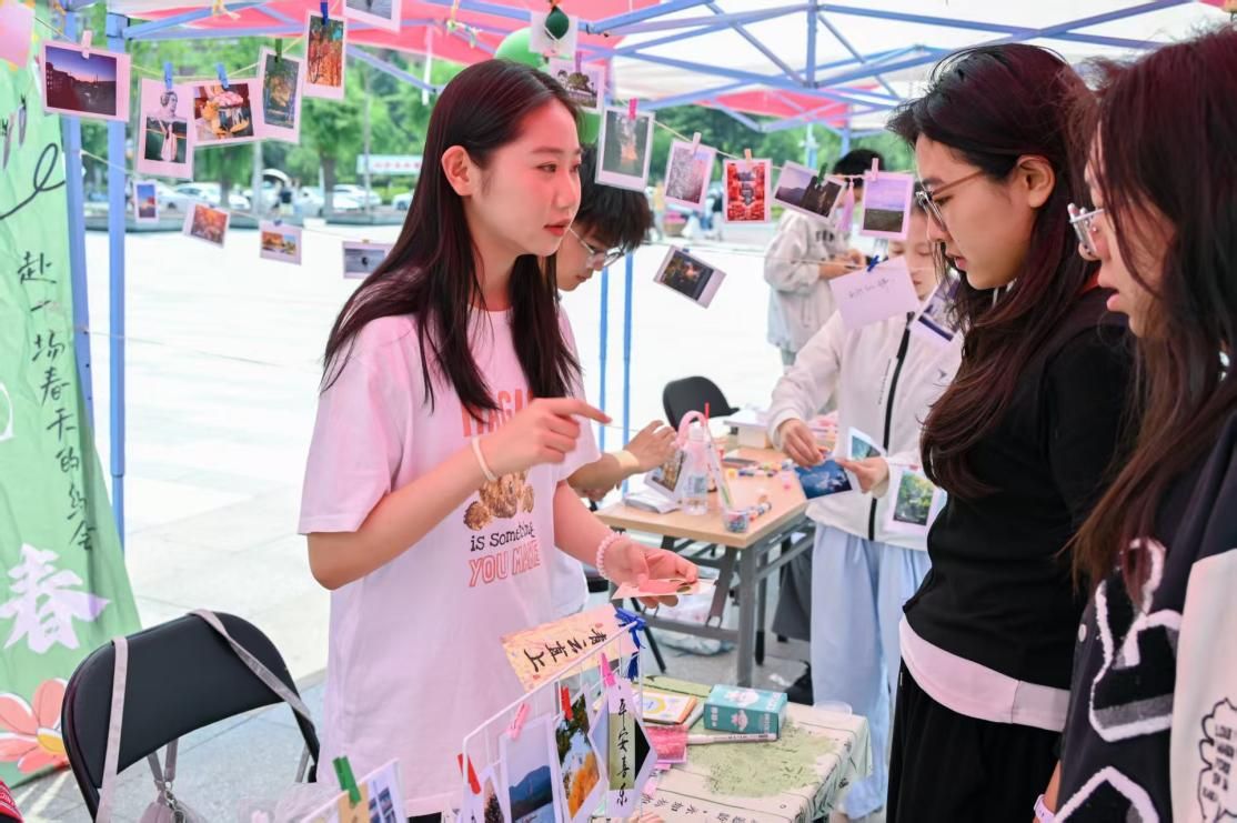 在作品展区,学院同学们的摄影作品有序悬挂于棚子上、陈列在桌面架子间。每一幅作品都是创作者独特视角的呈现,他们以镜头为笔,以光影为墨,在校园的各个角落寻踪觅迹,定格下生活中的美好瞬间与内心触动。这些作品从不同维度展现了同学们对世界的观察与思考,成为摄影展上引人注目的静态风景,吸引众多师生驻足欣赏,感受影像背后的心灵温度。