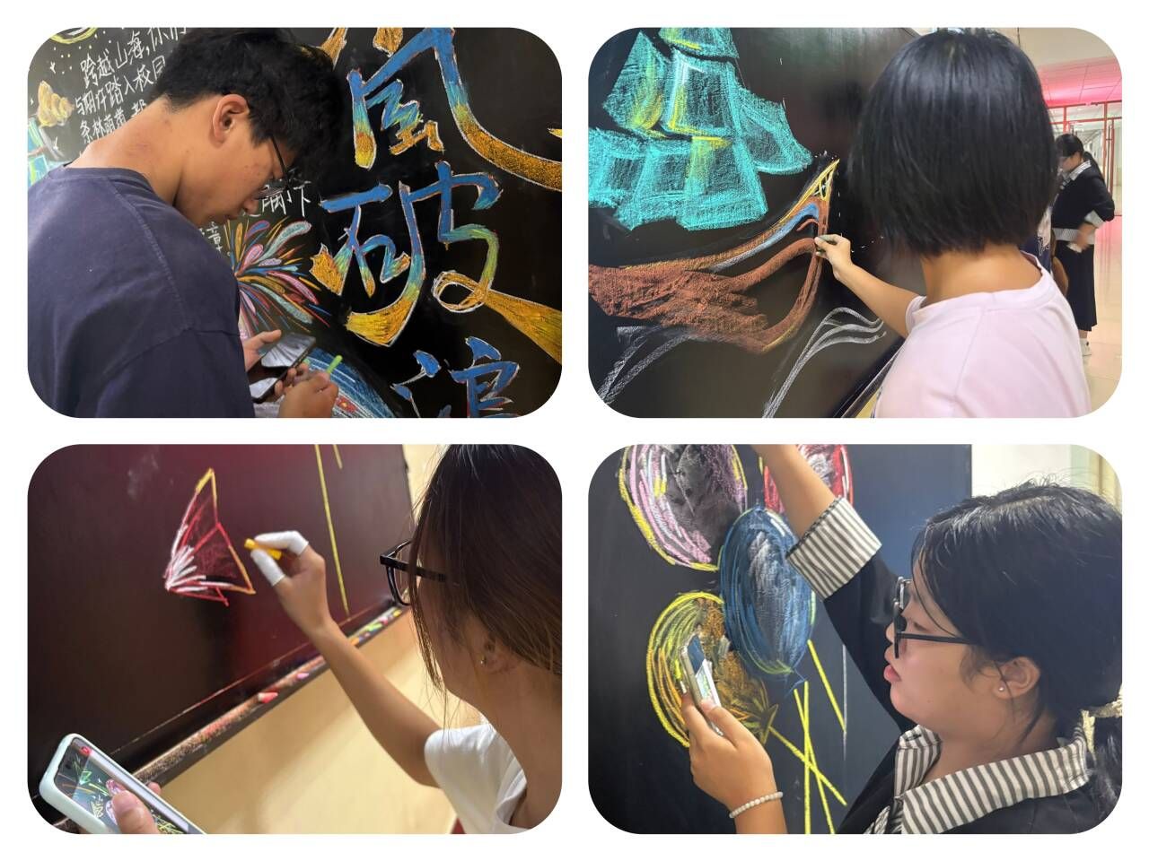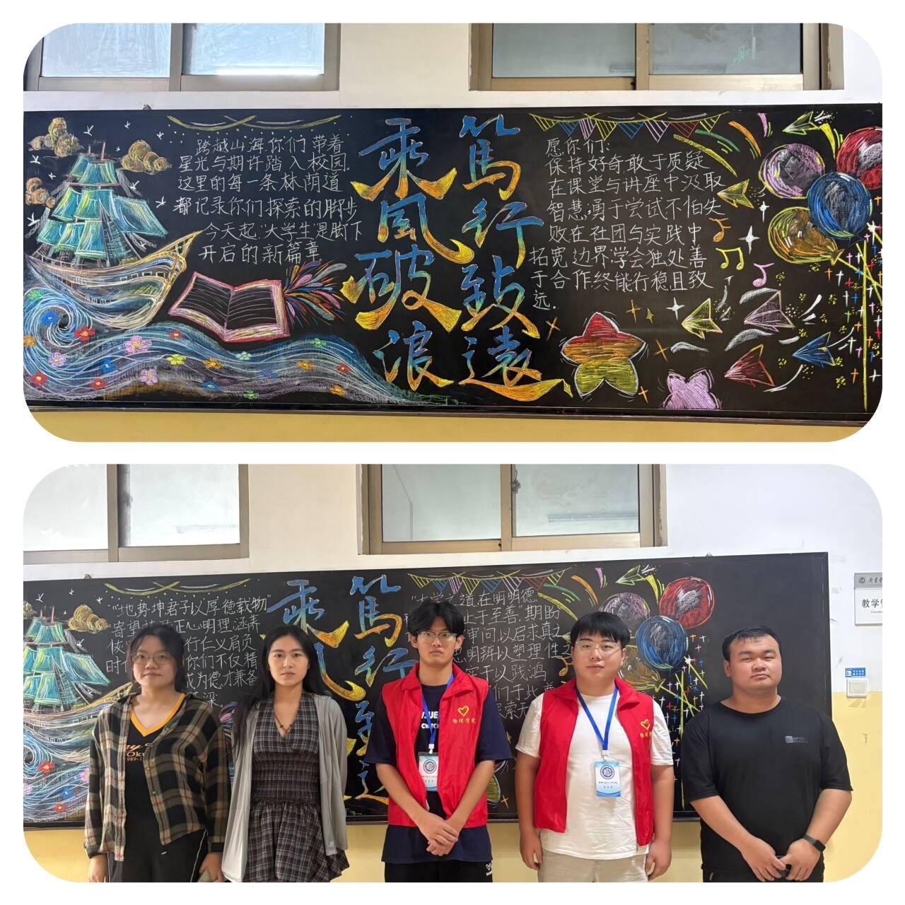 此次开学迎新主题黑板报活动的成功举办,是学院深耕校园文化建设、做好新生入学教育的生动实践。通过传统经典与青春元素的创意融合,不仅为校园增添了文化气息,更在潜移默化中激励着新生们以笃行之姿探索学术、以厚德之态涵养品格,全体师生将以此为起点,在新学期里乘风破浪,共赴成长新征程,书写学院发展与个人成长的精彩篇章!