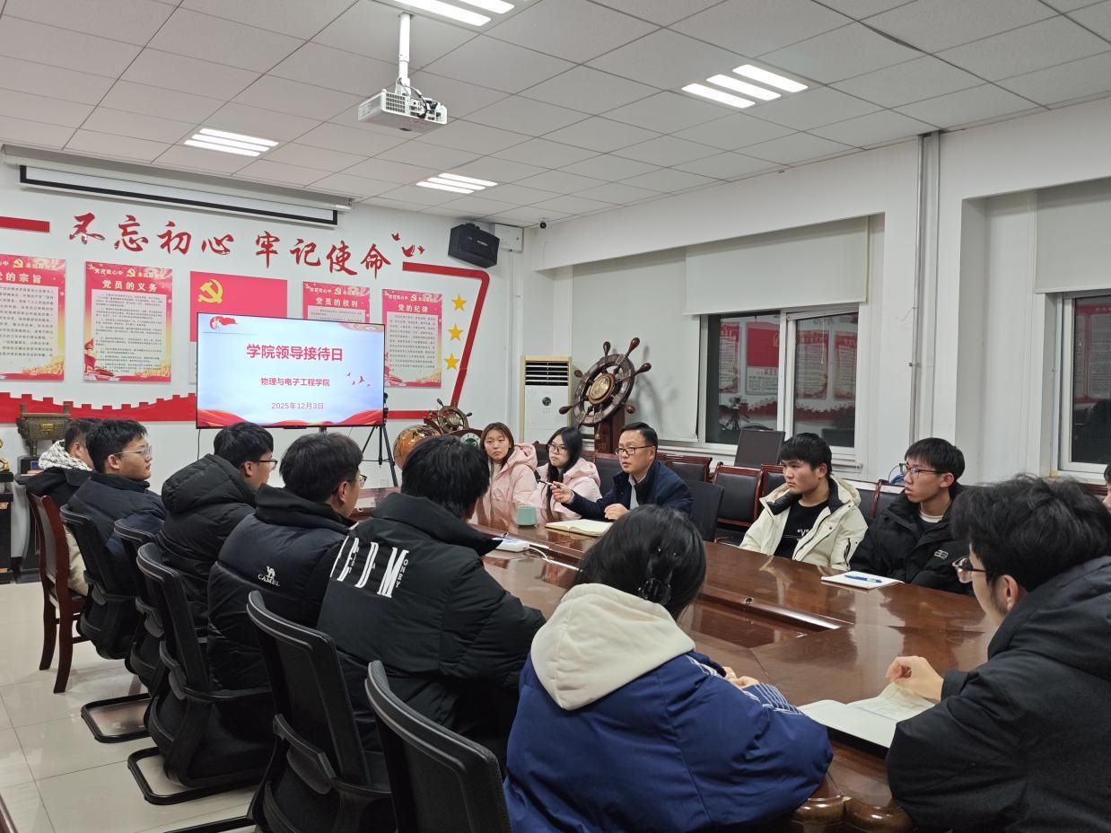 为进一步畅通学生诉求表达渠道,切实解决学生在学习生活中面临的实际问题,12月3日,伟德国际victor1946“学院领导接待日”活动在理科楼二楼会议室顺利举行。学院党委副书记辛允东出席活动,与学生代表面对面沟通交流。