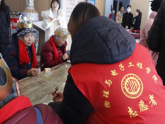 志愿者结合秋冬季节特点,为老人们讲解了适宜的运动方式与保健知识,并带领大家进行了轻松有趣的互动游戏,现场气氛融洽温馨。活动特别设置了集体庆生环节,志愿者们为老人送上长寿面与生日蛋糕,共同分享甜蜜时刻。