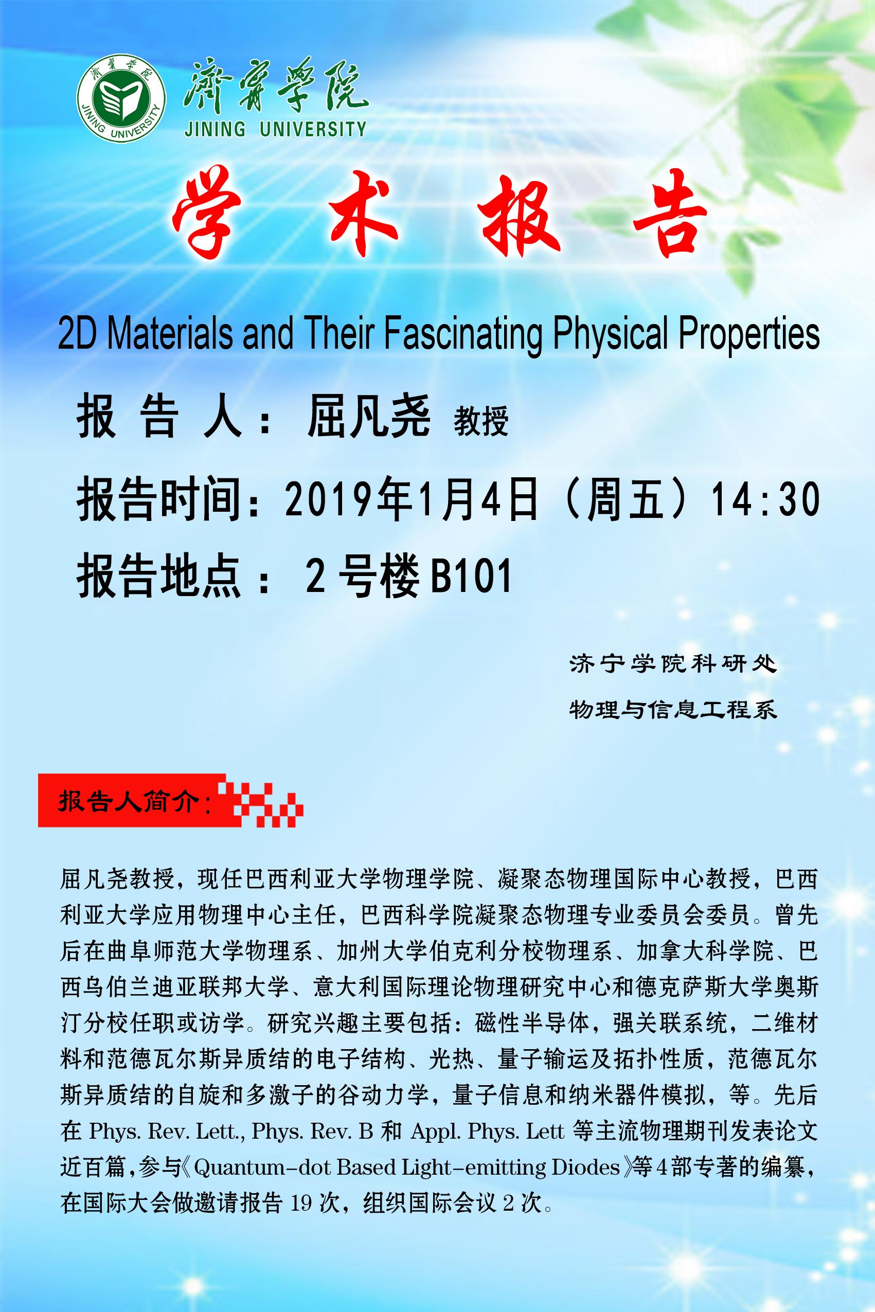 屈凡尧教授学术报告“2D materials and their fascinating physical properties”信息预告
