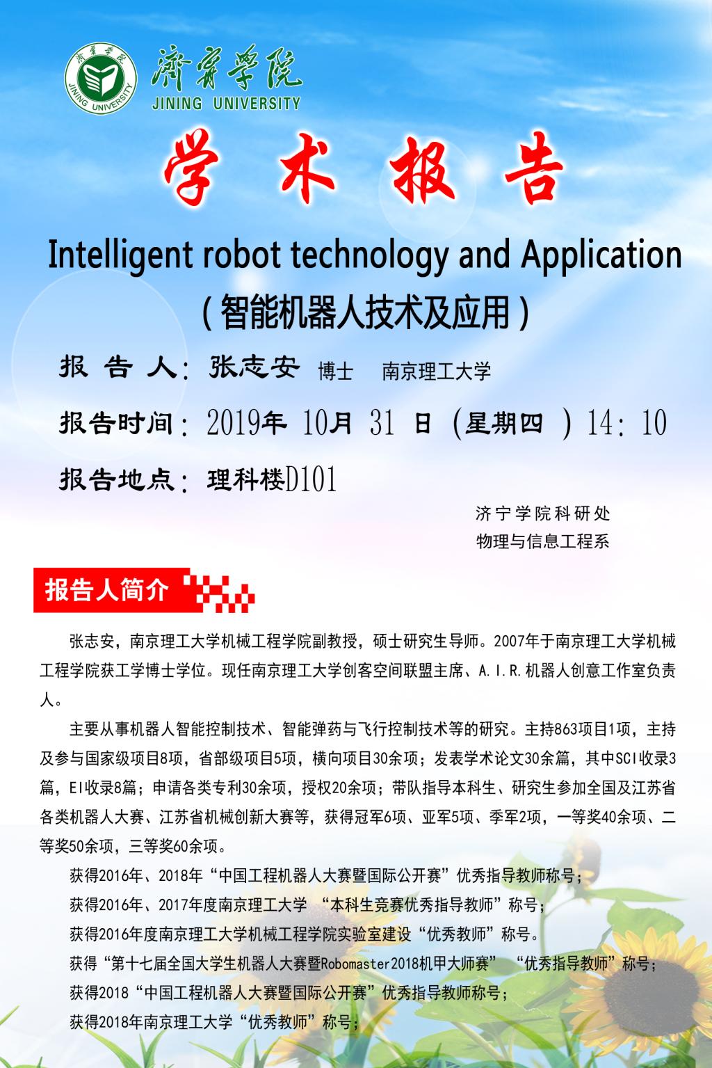 张志安博士学术报告“Intelligence Robot Technology and Application”信息预告