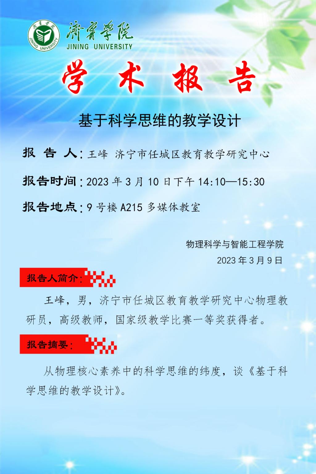 学术报告:基于科学思维的教学设计