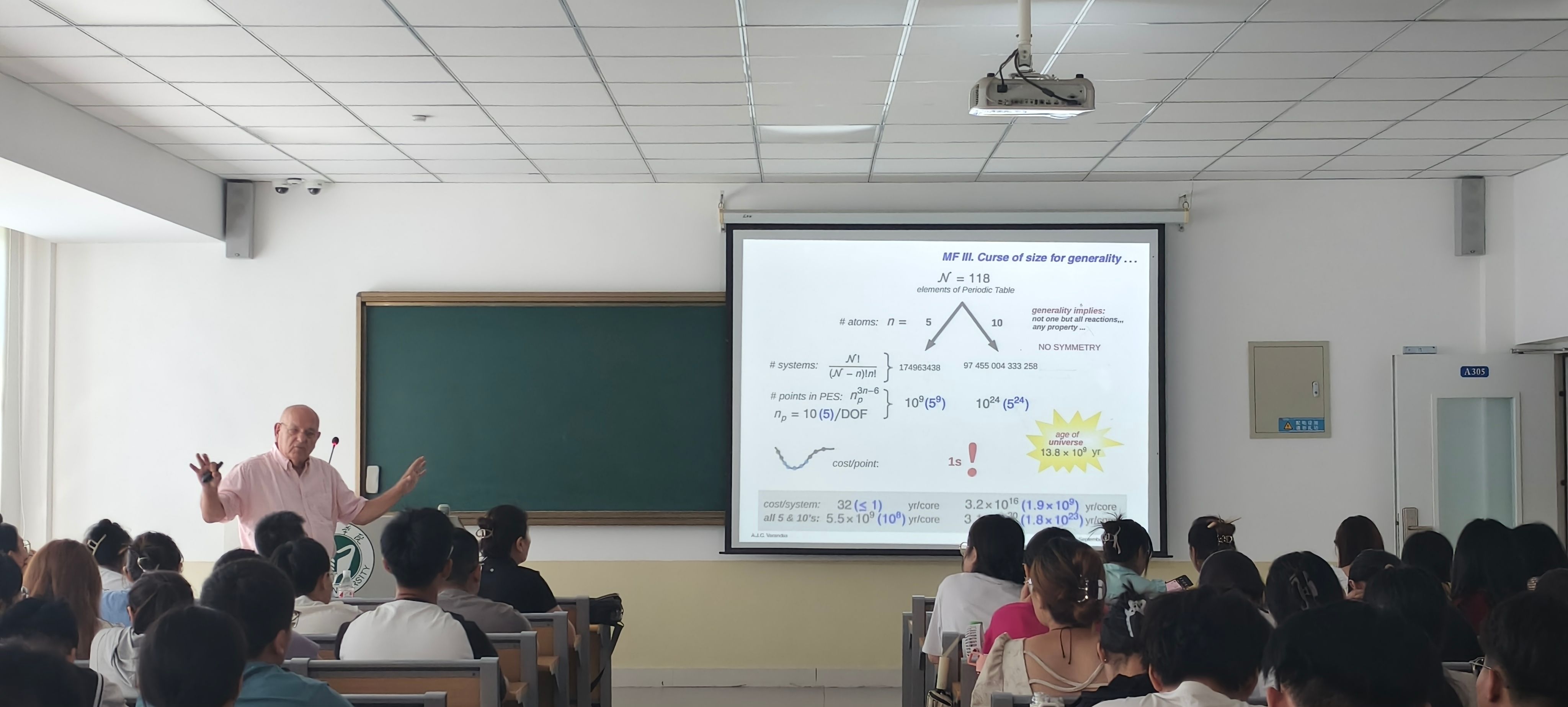 报告中,Varandas教授深入阐述了其提出的Attitudinal-Green方法在从分子到二维分子材料计算中的应用。Varandas教授精彩的报告拓宽师生们的学术视野,激发了师生们对科学研究的兴趣。