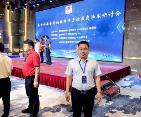 本次学术研讨会由全国物理科学方法教育研究中心联合《中学物理》编辑部、《物理教师》编辑部主办,泰山学院附属中学弘信学校协办。研讨会以“AI+物理教育下的科学思维培养”为主题,包含主旨报告、专题沙龙、名师论坛、教学展示、科学晚会、论文交流等环节。我院教师通过与全国中学物理精英教师的深入交流,了解了中学物理教学现状和对教师知识、能力、素养方面的需求,为我院物理学师范生培养目标指明了方向。