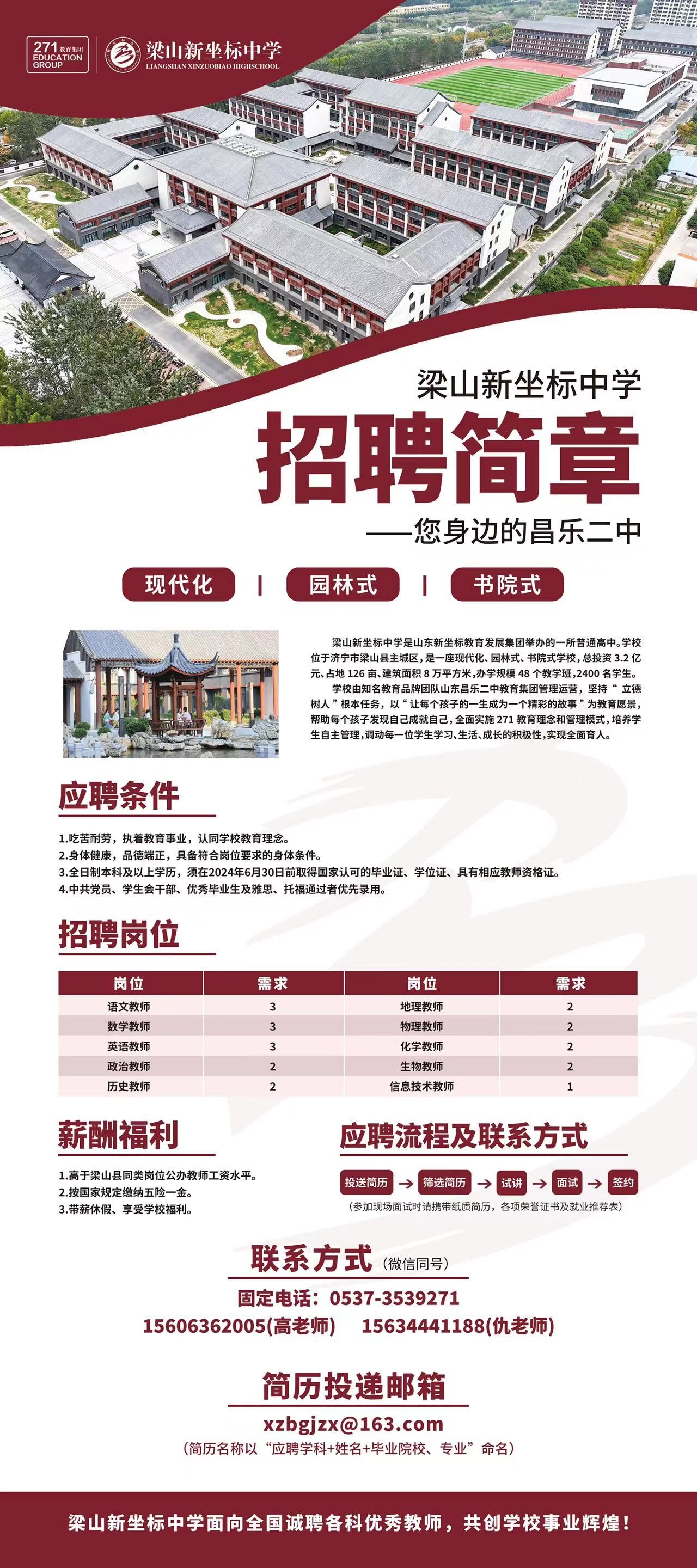 梁山新坐标中学招聘简章