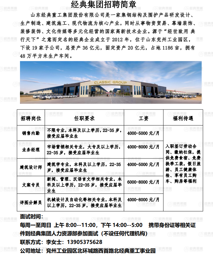 经典集团招聘